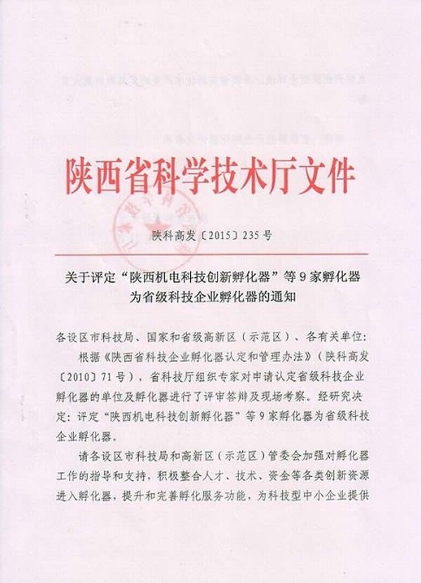 2015年,我中心負責運營管理的“陜西機電科技創(chuàng)新孵化器”通過多年來服務行業(yè)中小企業(yè)的經(jīng)驗積累,憑借自身的行業(yè)服務資源優(yōu)勢,成功通過了陜西省省級科技企業(yè)孵化器的認定。在此基礎上,又成功吸納了四個創(chuàng)新團隊的入駐,包括隧道掘進裝備研發(fā)團隊、果園運載機研發(fā)團隊、新材料應用技術(shù)研發(fā)團隊、纖維檢測儀器研發(fā)團隊。