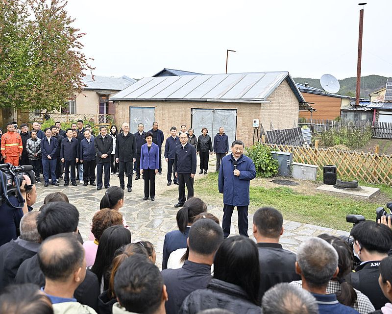 9月6日至8日,中共中央總書記、國家主席、中央軍委主席習近平在黑龍江考察。這是6日下午,習近平在大興安嶺地區(qū)漠河市北極村村民史瑞娟家的民宿小院考察。新華社記者 鞠鵬 攝
