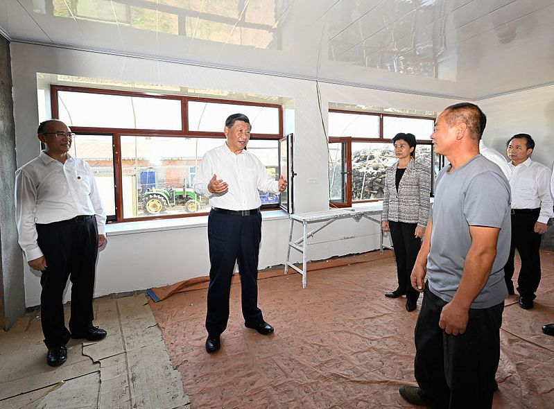 9月6日至8日,中共中央總書記、國家主席、中央軍委主席習近平在黑龍江考察。這是7日上午,習近平在遭受洪澇災害的哈爾濱尚志市老街基鄉(xiāng)龍王廟村,察看水毀房屋重建情況。新華社記者 殷博古 攝
