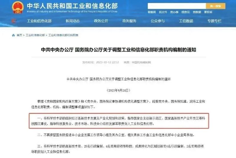 日前,國務(wù)院辦公廳發(fā)布了《關(guān)于調(diào)整工業(yè)和信息化部職責(zé)機構(gòu)編制的通知》,重組科學(xué)技術(shù)部,將科學(xué)技術(shù)部的組織擬訂高新技術(shù)發(fā)展及產(chǎn)業(yè)化規(guī)劃和政策,指導(dǎo)科技服務(wù)業(yè)、技術(shù)市場、科技中介組織發(fā)展等職責(zé)劃入工業(yè)和信息化部。