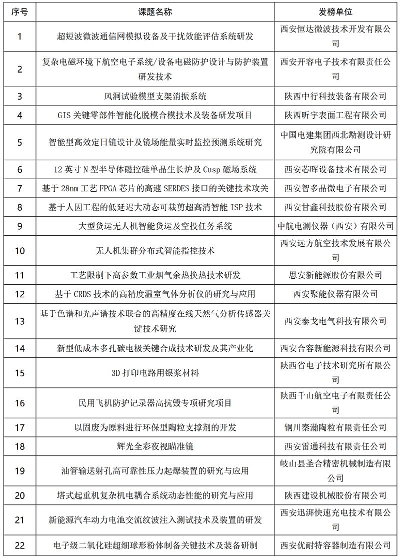 為調(diào)動全社會力量攻克陜西產(chǎn)業(yè)發(fā)展亟待解決的關(guān)鍵核心技術(shù),加快推動重大科技成果轉(zhuǎn)化和產(chǎn)業(yè)化,現(xiàn)將2023年第二批“揭榜掛帥”課題予以張榜公布,面向全國公開征集解決方案和承擔(dān)單位。