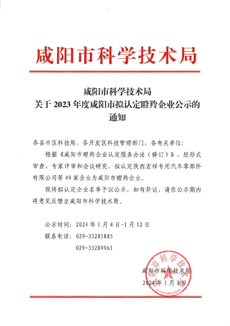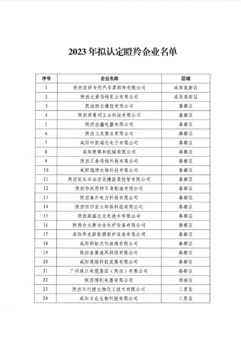 咸陽市科學(xué)技術(shù)局關(guān)于2023年度咸陽市擬認(rèn)定瞪羚企業(yè)公示的通知