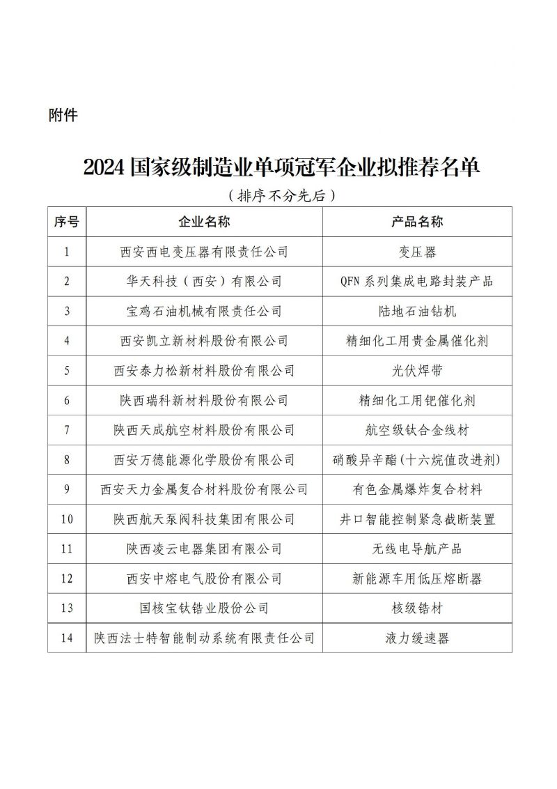 關(guān)于2024年國家級制造業(yè)單項冠軍企業(yè)擬推薦名單的公示